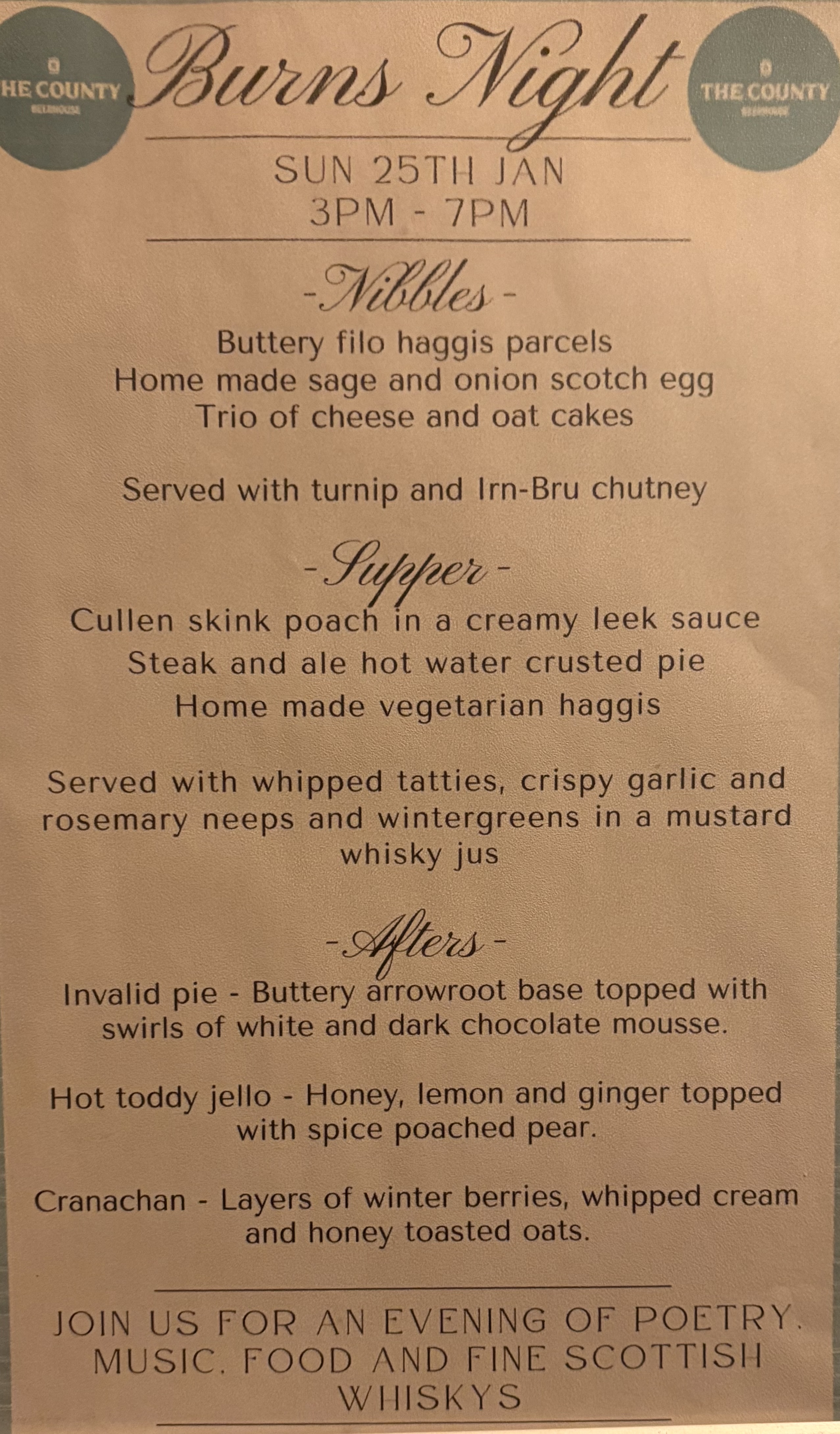 PUB LUNCH Mon 19 January 2026 @ 12:30 to 14:00 WEDNESDAY CLUB NIGHT Wed 21 January 2026 @ 20:00 to 22:00 SUNDAY LUNCH Sun 25 January 2026 @ 12:30 to 14:30 BURNS NIGHT, AT THE COUNTY BEERHOUSE, HUDDERSFIELD Sun 25 January 2026 @ 15:00 to 19:00 LIZ'S VICTORIAN PUB BAR NIGHT Sun 25 January 2026 @ 20:00 to 22:00 WALK AND LUNCH IN THE YORKSHIRE SCULPTURE PARK Sat 31 January 2026 @ 10:30 to 14:00 MEAL AT JULIOS Sun 1 February 2026 @ 18:30 to 20:30 ALFA TRAVEL LLANDUDNO, SNOWDONIA/CAERNARFON Mon 2 February 2026 - Fri 6 February 2026 WEDNESDAY CLUB NIGHT Wed 4 February 2026 @ 20:00 to 22:30 SCRABBLE EVENING Fri 6 February 2026 @ 19:30 to 22:30 |